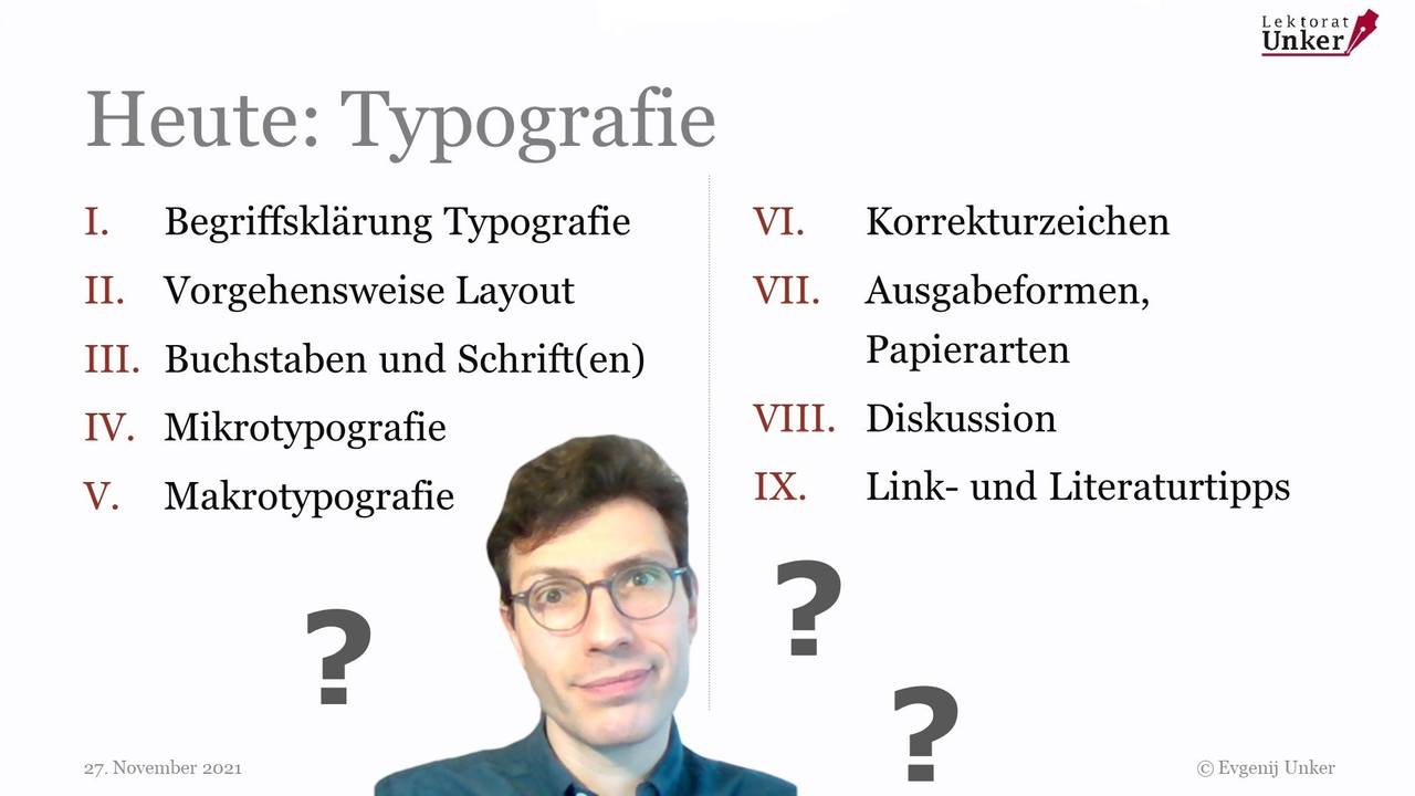 - Es handelt sich um die ungekürzte Aufzeichnung des gleichnamigen Webinars mit und von Lektorenausbilder Evgenij Unker vom 27.11.2021, 11:00–13:40 Uhr.